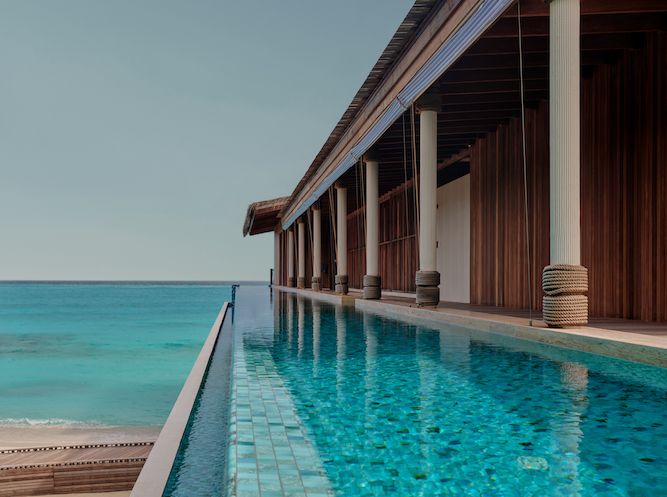 وفي جزيرة “سَم وير”، تم تصميم سبع فلل متعددة المستويات تجمع بين الإقامة فوق الماء والإقامة الشاطئية في تجربة واحدة فاخرة. ويمكن للضيوف الاختيار بين فلل بثلاث أو أربع غرف نوم، جميعها مجهزة بصالات واسعة، وبارات خاصة، ومسابح سماوية يصل طولها إلى 47 مترًا، إضافة إلى خدمة مضيف “روهو” التي تضمن مستوى رفيعًا من الرعاية الشخصية.